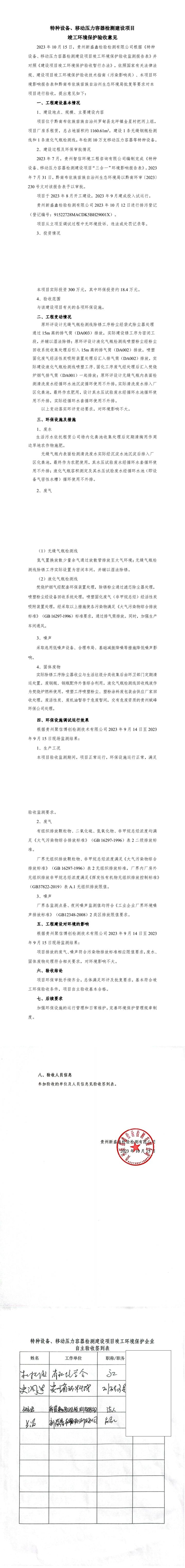 根據《國務院關于修改<建設項目竣工環境保護管理條例>的決定》(國務院令第682號),以及環保部《關于發布<建設項目竣工環境保護保護驗收暫行辦法>的公告》(國環規環評[2017]4號),現將《特種設備、移動壓力容器檢測建設項目竣工環境保護驗收監測報告表》公示如下: