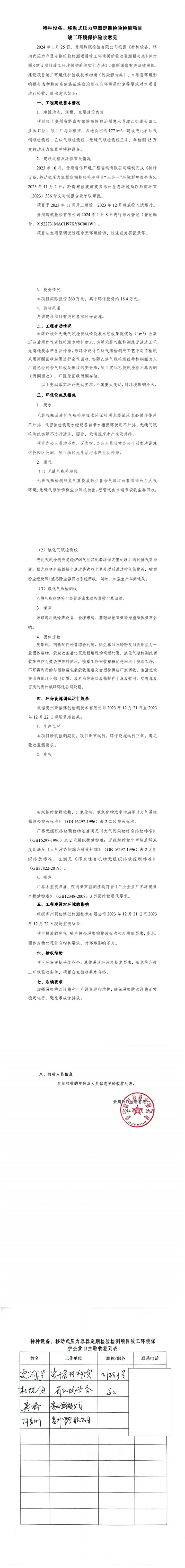 根據《國務院關于修改<建設項目竣工環境保護管理條例>的決定》(國務院令第682號),以及環保部《關于發布<建設項目竣工環境保護保護驗收暫行辦法>的公告》(國環規環評[2017]4號),現將《特種設備、移動式壓力容器定期檢驗檢測項目竣工環境保護驗收監測報告表》公示如下: