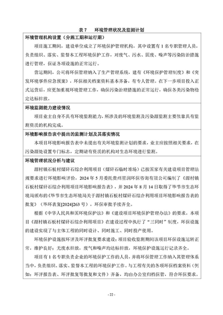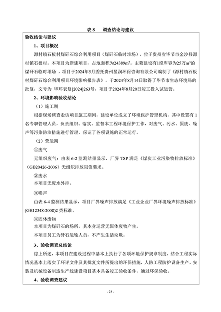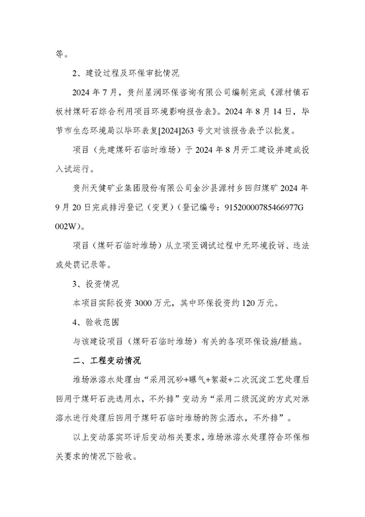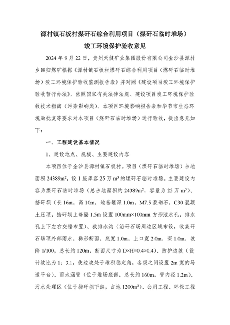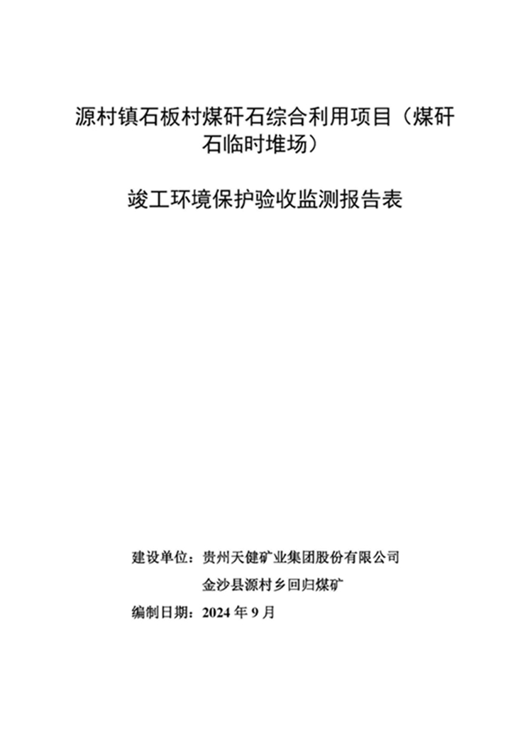 《源村鎮(zhèn)石板村煤矸石綜合利用項(xiàng)目(煤矸石臨時堆場)竣工環(huán)境保護(hù)驗(yàn)收監(jiān)測報(bào)告表》由貴州天健礦業(yè)集團(tuán)股份有限公司金沙縣源村鄉(xiāng)回歸煤礦編制;
