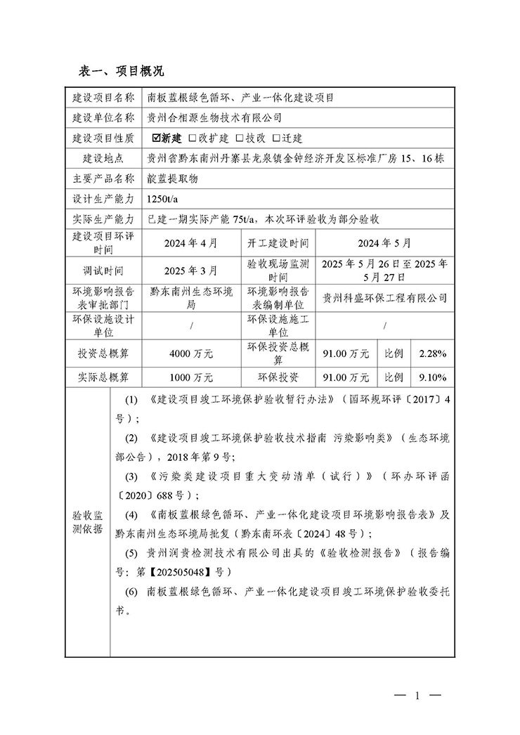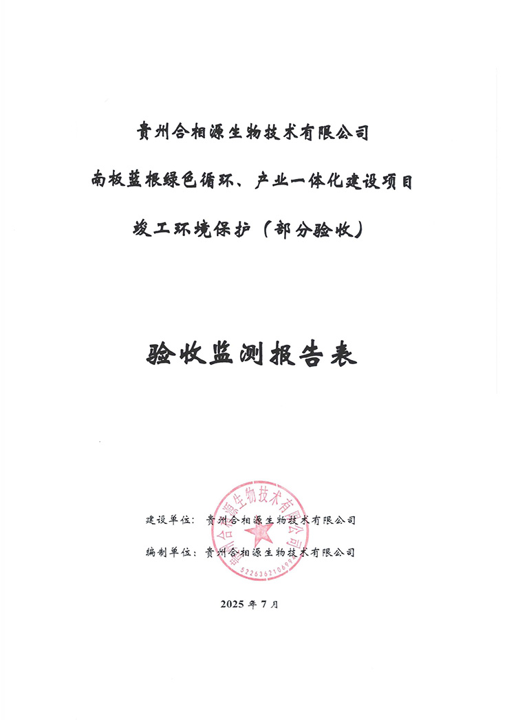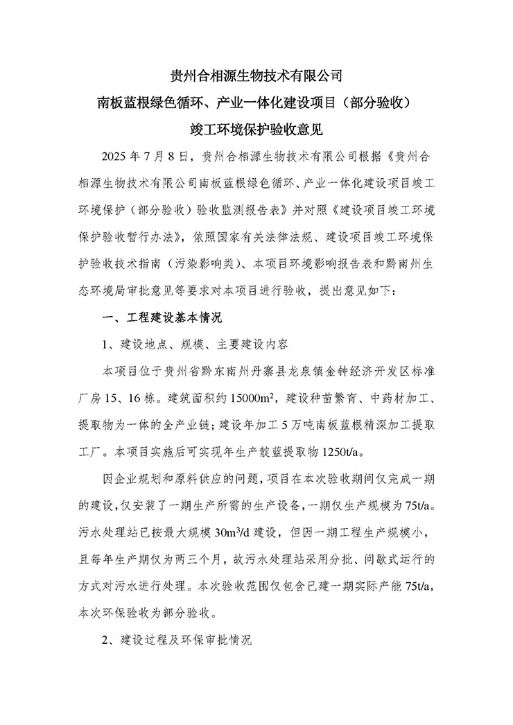 根據《國務院關于修改<建設項目竣工環境保護管理條例>的決定》(國務院令第682號),以及環保部《關于發布<建設項目竣工環境保護保護驗收暫行辦法>的公告》(國環規環評[2017]4號),現將《南板藍根綠色循環、產業一體化建設項目竣工環境保護竣工環境保護驗收監測報告》公示如下:
