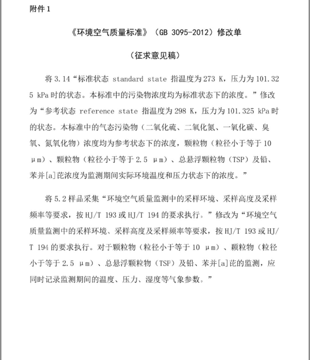 關(guān)于征求國家大氣環(huán)境質(zhì)量標(biāo)準(zhǔn)修改單意見的函