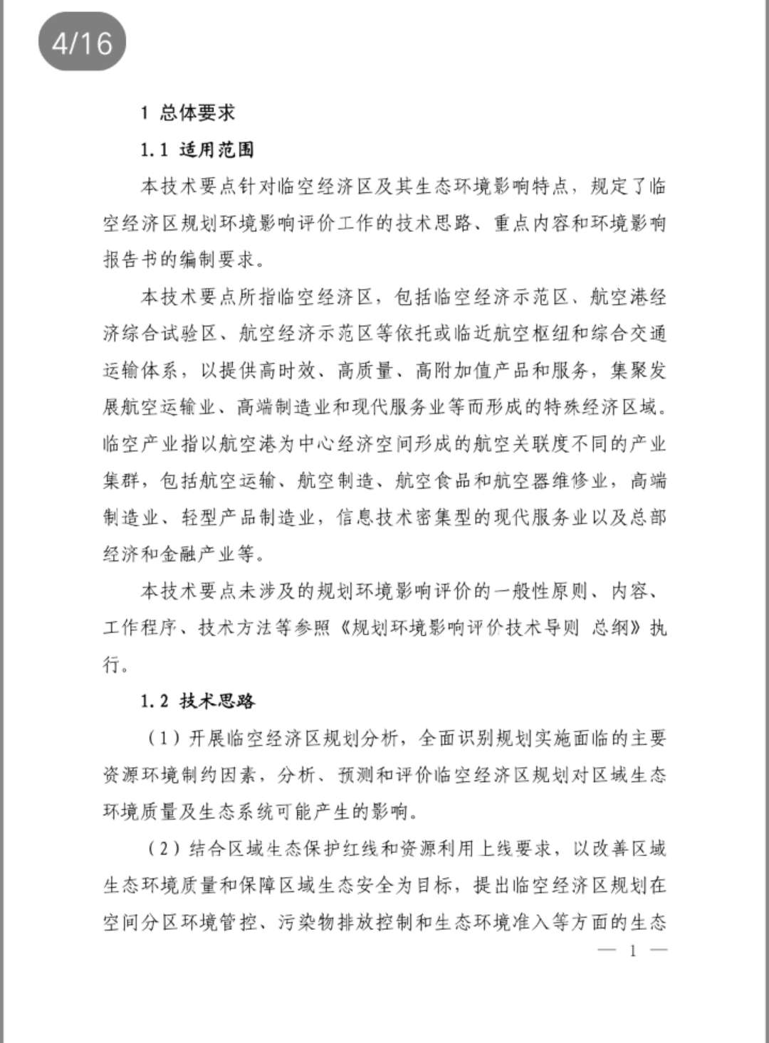臨空經濟區規劃環境影響評價技術要點(試行)