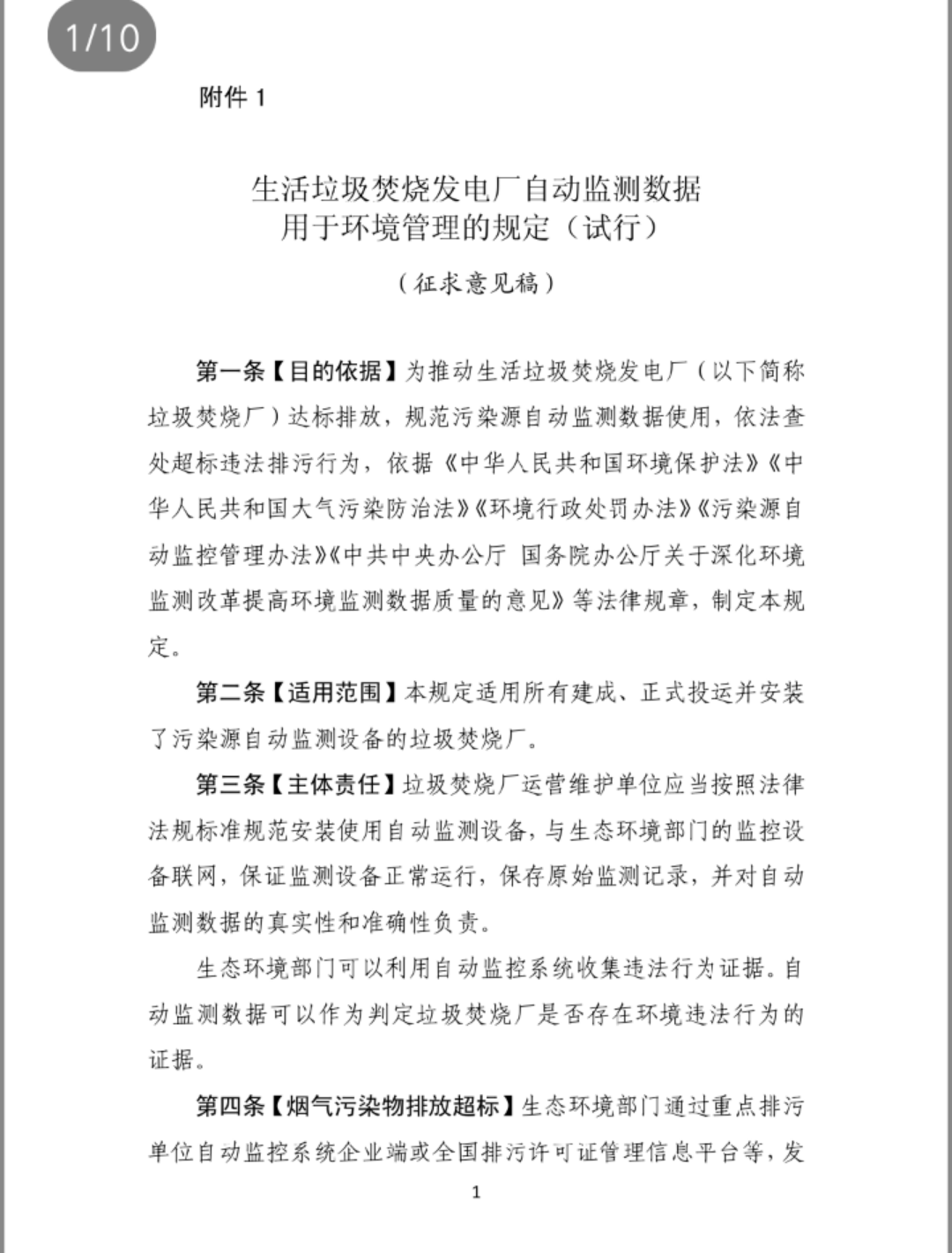 附件:1.生活垃圾焚燒發(fā)電廠自動(dòng)監(jiān)測(cè)數(shù)據(jù)用于環(huán)境管理的規(guī)定(試行)(征求意見稿)